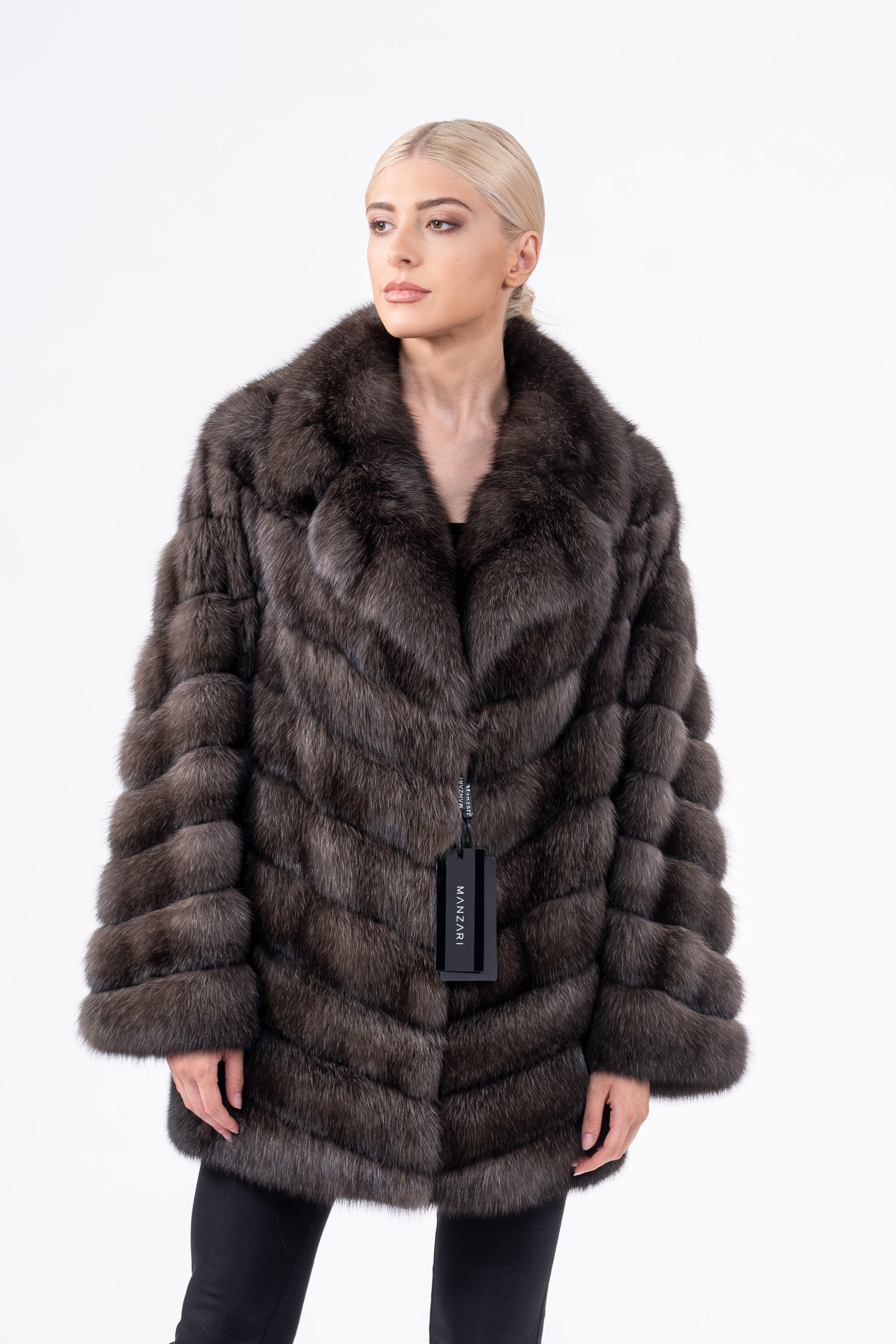 Краткое описание: Полупальто из меха баргузинского соболя с английским воротником, темно-коричневое